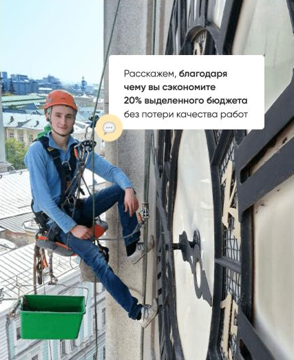 Очистка отдельных труднодоступных элементов кровли и фасада здания с вывешиванием альпиниста