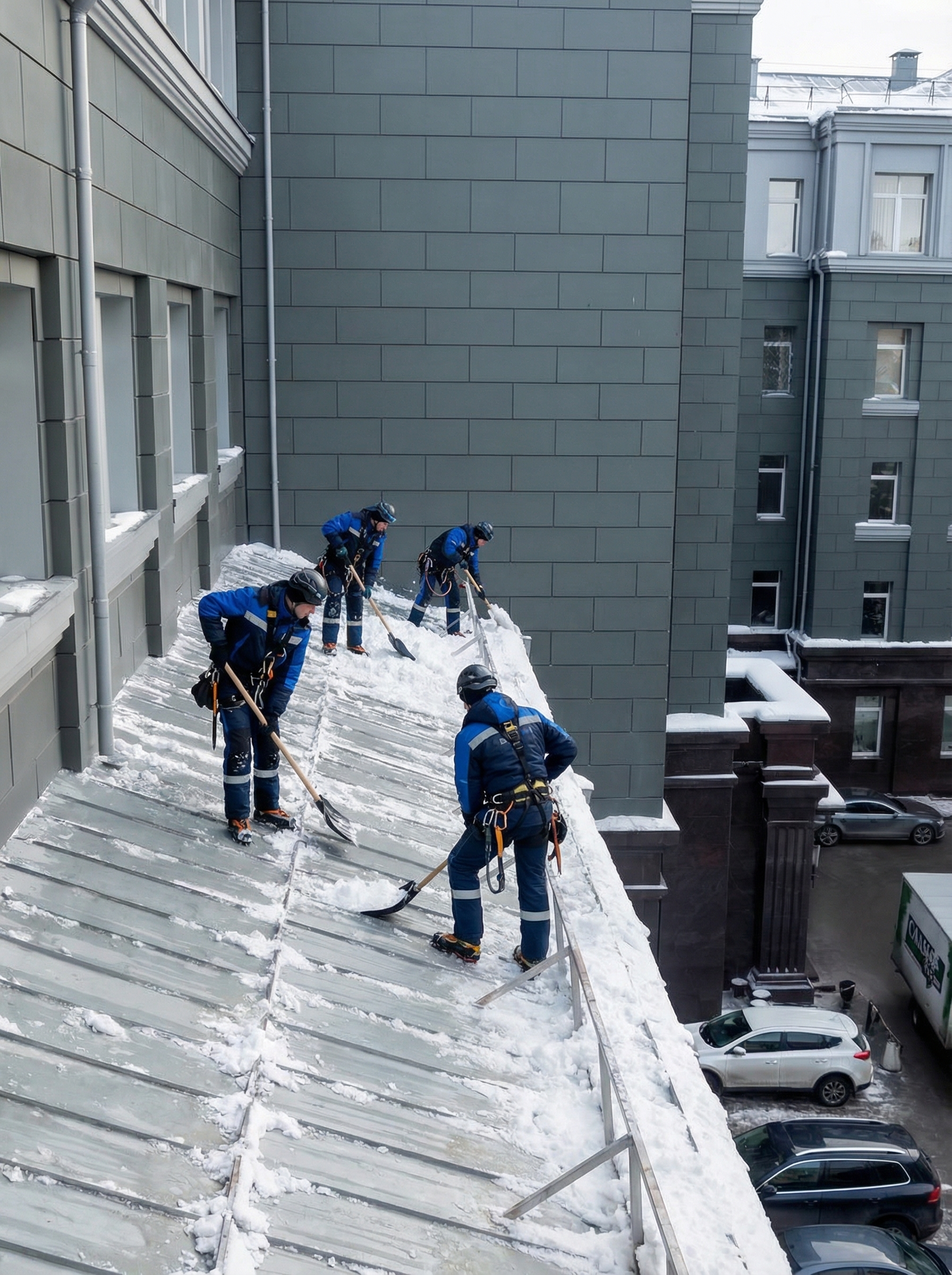 15 лет чистим от снега здания в Москве.