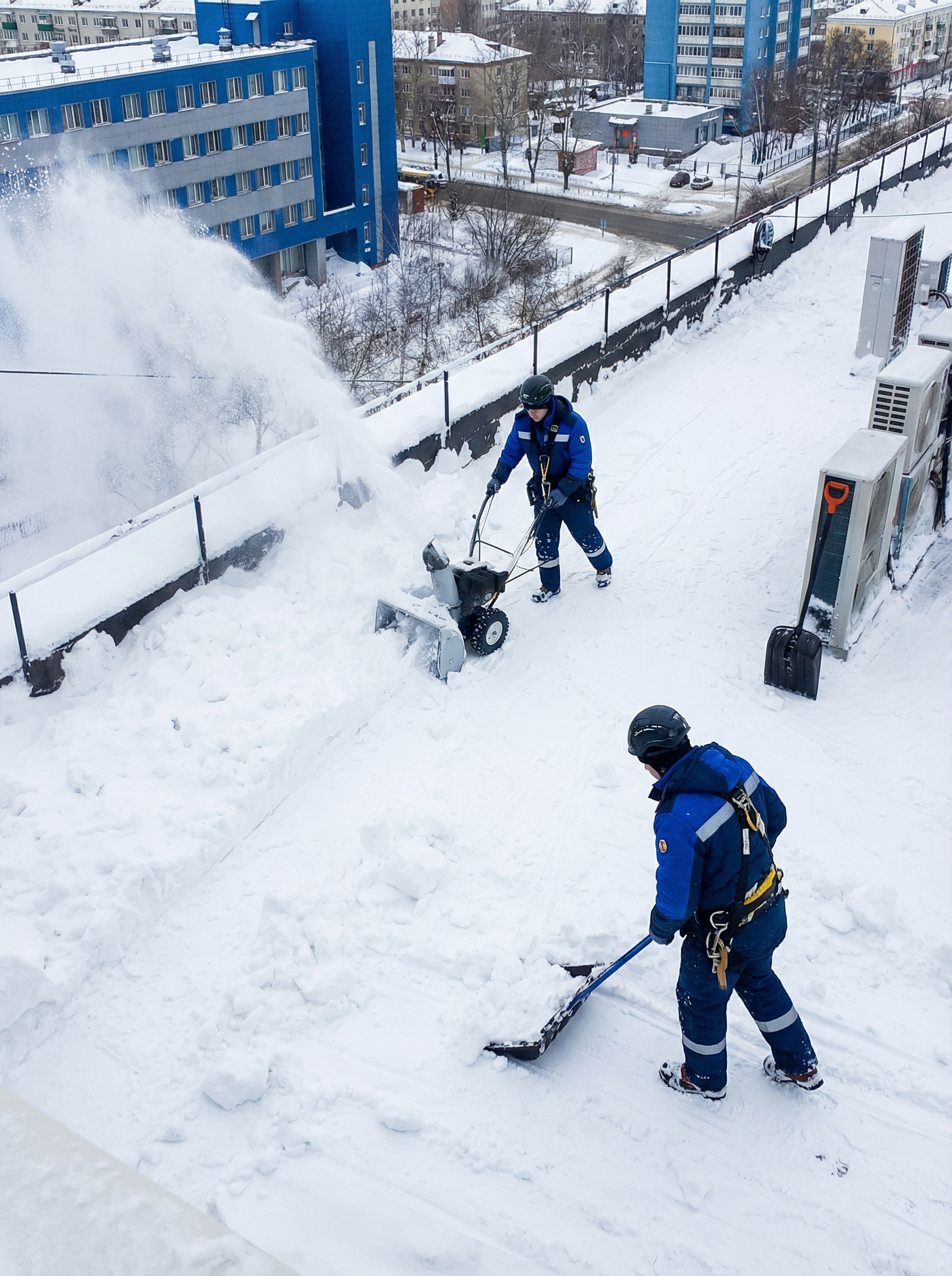 Очистка кровли от снега и льда на расстоянии 1,5 метра от края кровли